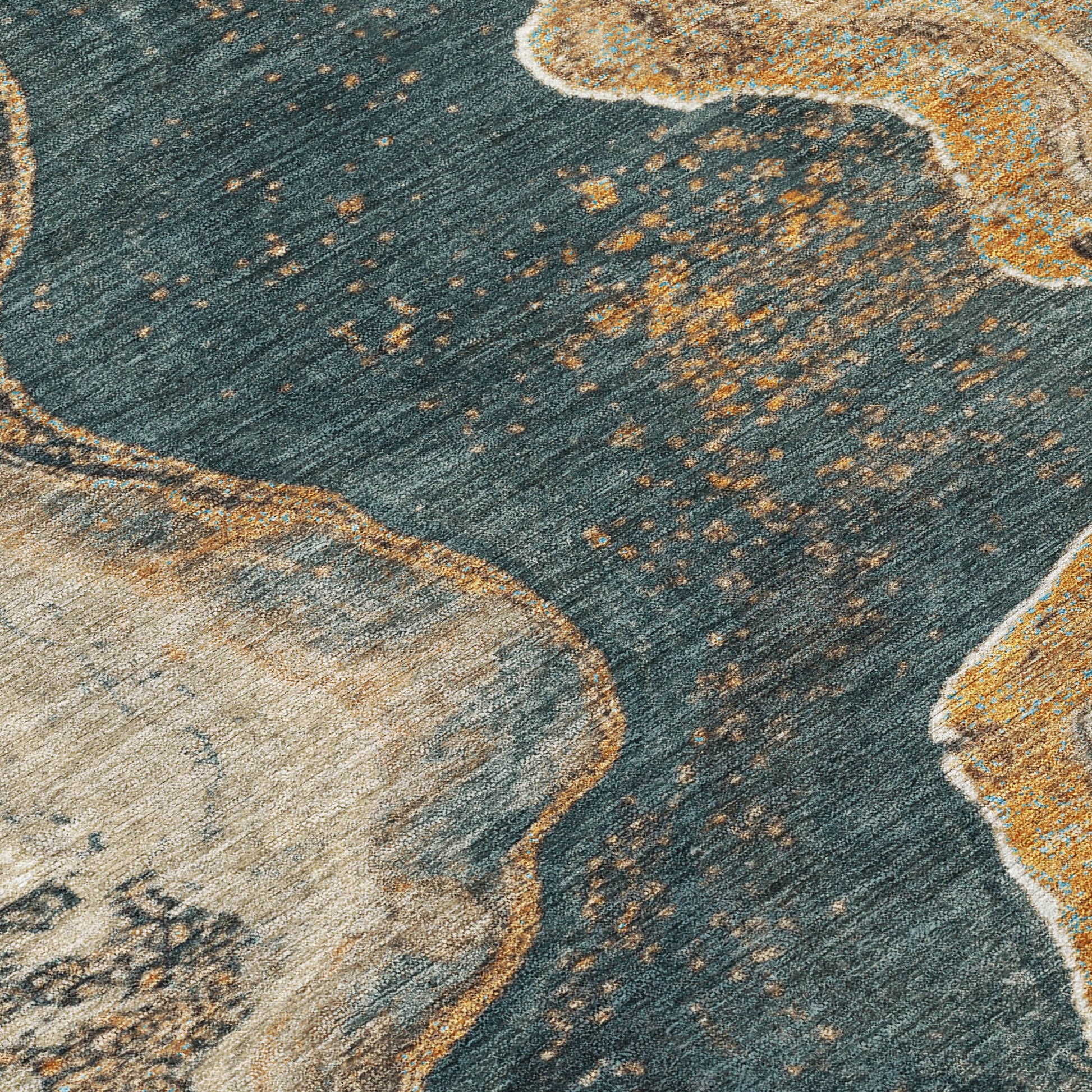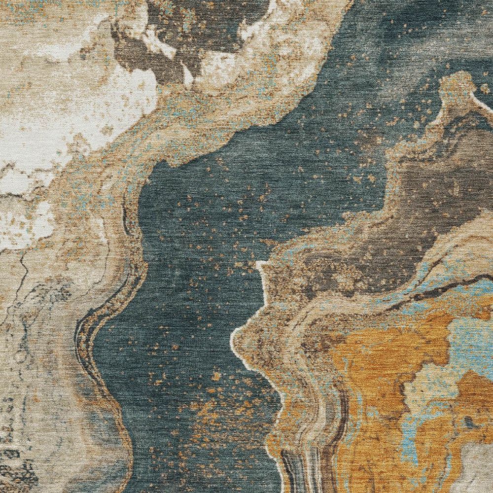 10' X 14' Wheat And Charcoal Abstract Washable Indoor Outdoor Area Rug