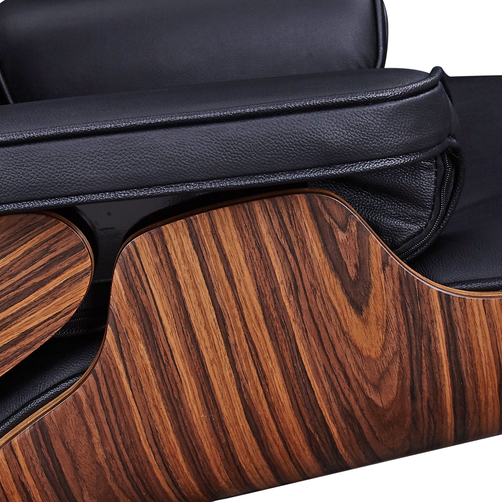 Black Rosewood Tufted Leather Lounge Chair With Ottoman, Mid Century Modern