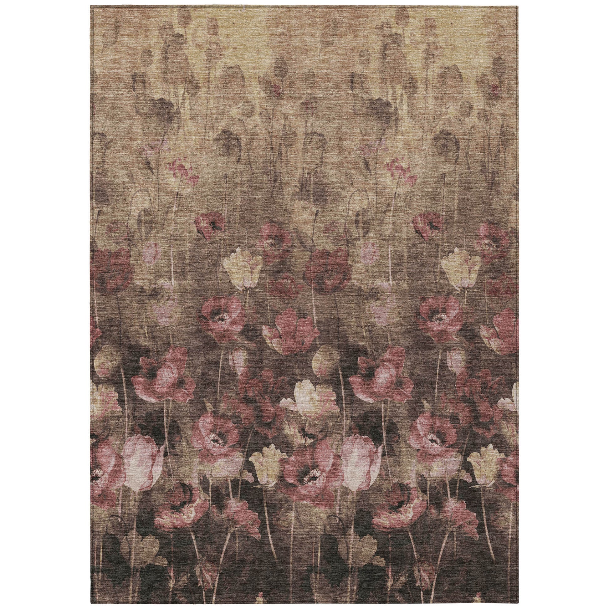 Taupe Brown Pink Floral Washable Indoor Outdoor Area Rug 9x12